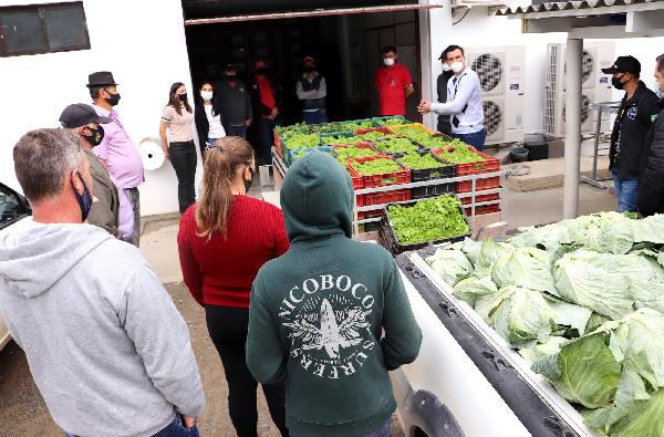 O prefeito Maicon Grosskopf esteve na secretaria de Educação recepcionando os produtores no ato em que eram entregues os alimentos e pode comprovar a qualidade dos vegetais produzidos no município...