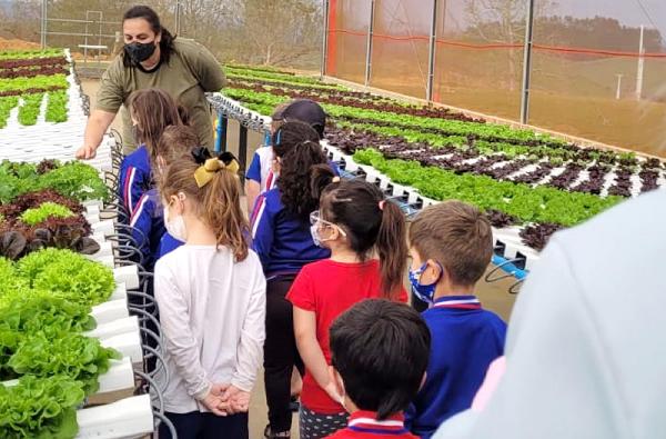 Alunos conhecem produção de alimentos hidropônicos
